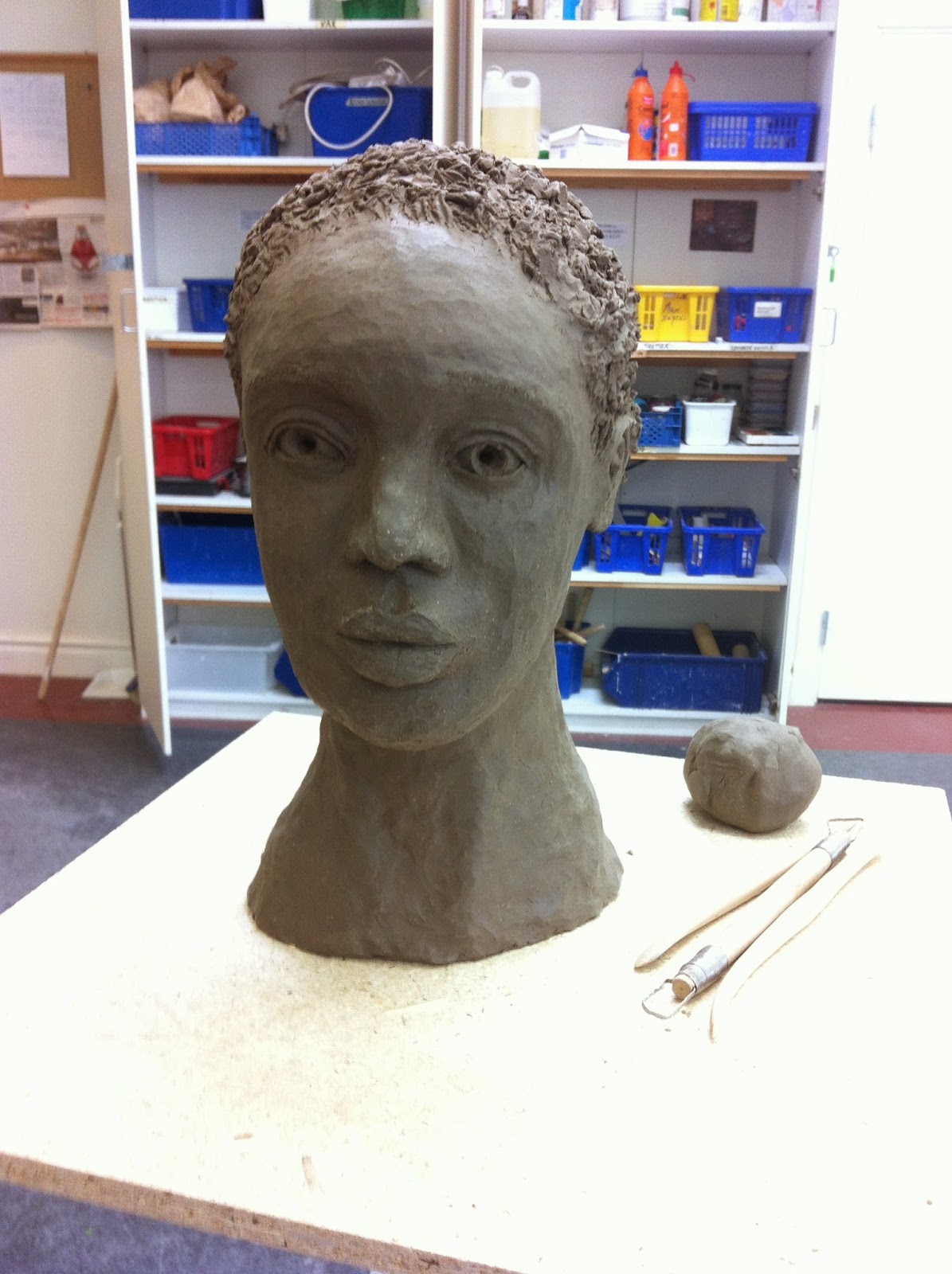 Denna vecka har varit superkul! Eftersom kursen rumslig gestaltning slutade i torsdags så var det ny kurs denna vecka, tisdag - torsdag. Vår klass var i skulptursalen och gjorde porträtt i lera. Det var sjukt svårt, mycket svårare än man tror, men jätteroligt. Nu kan jag nästan inte titta på en annan person utan att tänka: hur sitter ögonen, avstånd mellan mun och näsa, läpparna osv. Det var också roligt att få ha Karin tillbaka som lärare för hon är fantastisk.